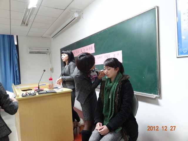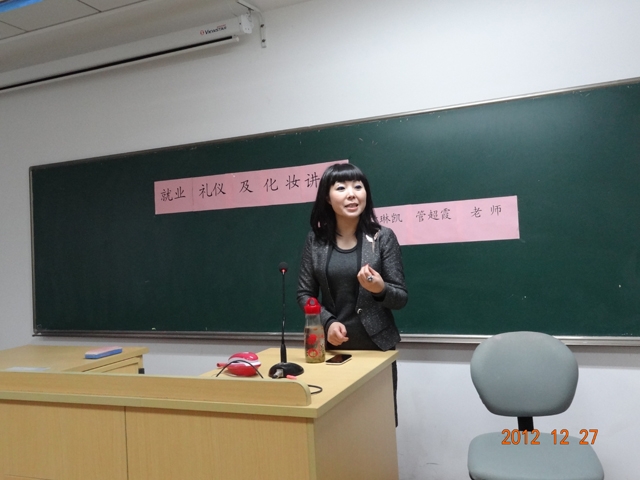 2012年12月26日下午,亚洲成人直播 研究生就业服务指导月系列活动之“就业礼仪与化妆讲座”在信息工程学院323教室举办。此次讲座邀请了全球著名企业——玫琳凯公司的礼仪培训师和美容顾问主讲,来自亚洲成人直播 、经济管理学院、法学院和校礼仪队的60多名同学参加了讲座。