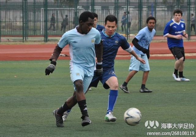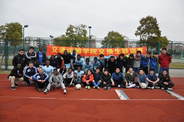 2013年3月20日下午,交运学院组织加纳班留学生与我校足球队在北区体育场开展足球联谊赛。体育部朱老师、交运学院团委书记曾令伟老师、辅导员都志亮老师到场为双方呐喊助威。