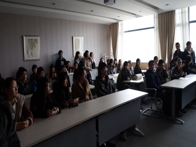 宣讲会以TNT快递公司的VCR开场,到场同学对公司有了大致了解。接着,刘小姐详细介绍了公司主要业务、部门组成、发展现状以及企业发展愿景。刘小姐重点了介绍了充满人文关怀的公司文化。然后为互动交流阶段,学生纷纷提问,企业招聘人员进行了耐心解答,气氛融洽。最后,公司两位HR分别与有意向进入TNT公司的同学进行了沟通,并进行了初步的面试。
