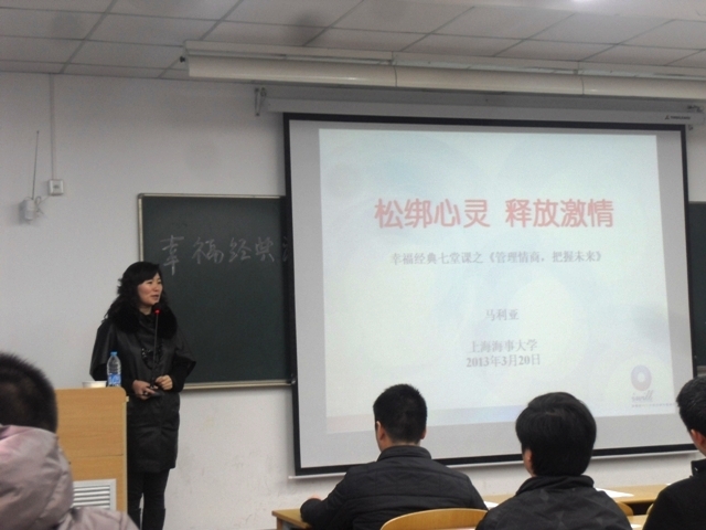 2013年3月29日,我院特邀美国ACI国际注册心理咨询专家、中国幸福心理学专家、青年创业导师、现任爱唯尔iwill(上海)企业发展有限公司CEO马利亚老师主讲《管理情商,把握未来》专题讲座。亚洲成人直播 全体心理委员以及心理知识爱好者130余人参加了本次讲座。