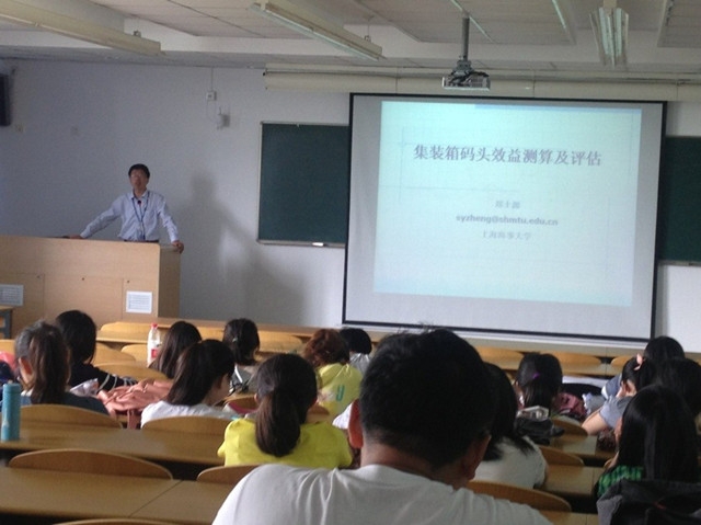 5月22日下午,亚洲成人直播 郑士源老师在3A204为交运的学生作了一个题为《集装箱码头效益测算及评估》的专题讲座。