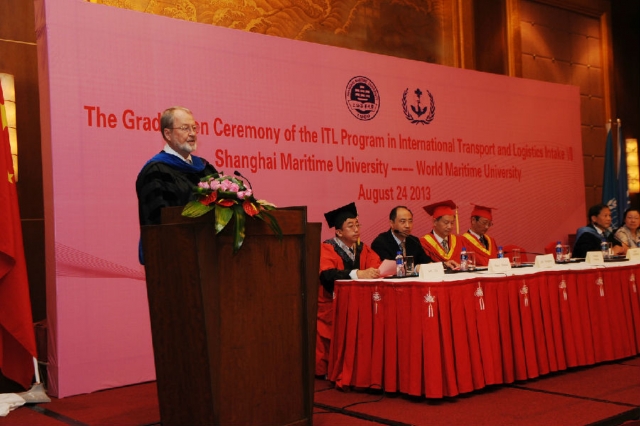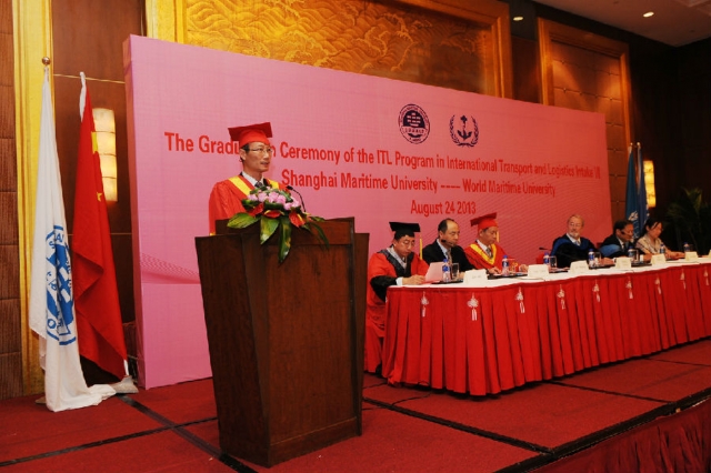 2013年8月24日上午,我校与世界海事大学合作举办的“国际运输与物流”硕士项目第八届学员毕业典礼在上海东锦江希尔顿逸林酒店顺利举行。我校校长黄有方、副校长金永兴,世界海事大学校长比昂·沙瑞夫、副校长马硕,国际交流处处长余宏荣,亚洲成人直播 院长施欣、党委书记冯晨曦等嘉宾共同出席毕业典礼。