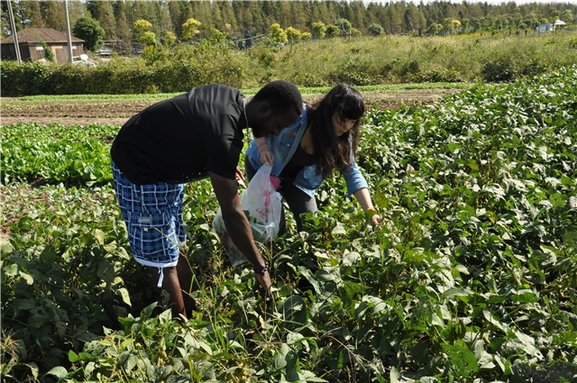 本次活动大体分为三部分,首先,来到了蔬菜园,由都志亮老师带头,中外学子卷着裤管踏进了庄稼地,采摘青菜、毛豆、空心菜等新鲜农作物,不仅体验了一回儿当农民的感觉,更体会了丰收的喜悦。接着,便分组进行了自由活动,中外学子们有的选择射箭、有的钓鱼,大家都乐在其中,同时更增进了中外学子们之间的友谊。最后,在大家欢聚一堂吃着农家菜、欢声笑语地表演着各种文艺节目中,活动渐渐走向了尾声。