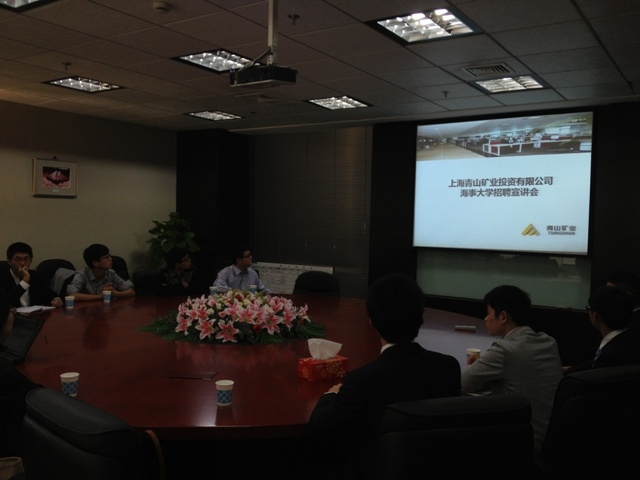 受仝女士邀请,我院师生一起在企业食堂就餐,并参观了集团园区、员工宿舍,感受了企业的福利待遇。午饭后,前往会议室进行宣讲,仝经理首先播放了一段近期习主席带队访问印度尼西亚的新闻联播视频,其中介绍了贵公司在印尼的镍矿项目。然后她以PPT的形式图文并茂地向我们介绍了集团的整体概况和业务发展状况,耐心地为来访学生详细说明了公司的主营业务,并带领我们一行参观了企业的展览馆,该馆由世博会设计团队打造,观看时颇有惊喜,视频介绍极具震撼。随后进行圆桌座谈,曹经理为我们详细介绍了更多关于公司的发展思维,将来企业的愿景等,他还耐心询问我们的感受并作了很具体形象的解释,给我们很多启发。之后,仝女士为前来应聘的学生进行了当场面试,并对我院学生的能力与素质表示了肯定。最后,曹经理和仝经理与赵睿、陈祯如老师就上海海事大学学生实习基地建设合作协议做了良好的沟通,并与之达成了初步合作的意向;同时也就企业将来是否在我院设立奖助学金进行了初步沟通。