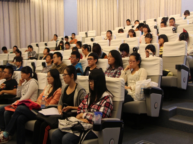 首先,郁先生简单的做了自我介绍,他丰富的人生经历博得了同学们的阵阵掌声。随后,郁先生就同学们英语口语不好的现象做了透彻的分析,阐述了自己独到的观点,并用幽默的互动、超水平的口语展示了自己创设性的英语学习方法--母语学习法,即先增强英语语感的敏感度,再去学习英语。最后,郁先生耐心回答了同学们的各种问题。整场讲座同学参与度高,气氛活跃。