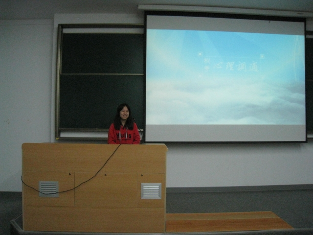 2013年11月10日,物流113班心理委员朱倩芸在3D209主持了以《秋季心理调适—让快乐治愈“心理感冒”》为主题的秋季心理调适活动,交通运输和物流管理专业11级全体学生参与了此次活动。