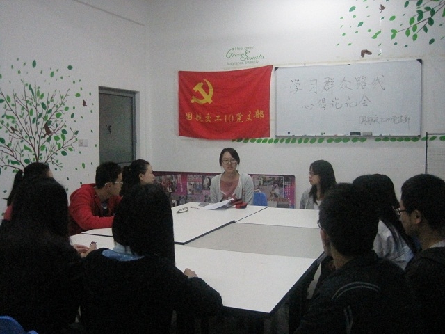 首先,黄健晨同学和党支部成员们重温了九月份学习群众路线的要点,并向党员们讲述了学习之后的个人感悟,让大家对群众路线的重要意义有了进一步的了解和认识,随后各位党员踊跃发言,分别阐述了自己对于群众路线的学习认识并展开了积极的讨论,让党员们更加清楚得明白了群众基础的重要性,走群众路线的必要性。之后,党员们就自身处于学校和社会应该怎样去实践发表了一些看法,发人深省,让党员们感觉到自身责任之重。
