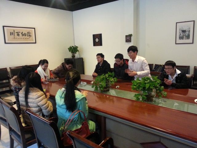 2014年3月5日下午,亚洲成人直播 党委副书记赵睿老师带领辅导员刘建老师、徐晓毅老师、都志亮老师、郝海光老师、兼职辅导员徐祥铭老师以及13名大三学生,一同走访了茗顺(上海)国际贸易有限公司,公司总经理姚颖、运营总监周晶、人事总监李丹热情接待了我院师生。