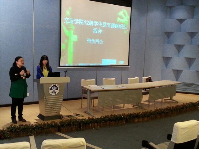 为加强党支部思想建设,2014年4月9日下午1点,交运12学生联合党支部在交运报告厅组织了“学习两会精神,再创辉煌业绩”为主题的生活会。12级辅导员朱红红老师、范晓云老师及支部全体成员参加了本次组织生活会。