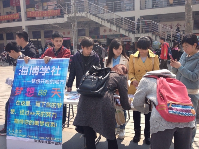海博学社为学生综合素质的培养提供了广阔的空间。海博学社自成立以来一直注重提高社员的综合素质,通过定期开展素质拓展等团体活动,使社员在组织能力和人际交往方面得到极大锻炼。不仅如此,海博学社更是建立了社团微信平台,把微信应用到社团对内的信息传递和对外的宣传交流,不仅可以让同学们轻松地了解掌握社团活动的动态,还可以及时收集同学的意见和建议,为学生与社团之间搭建起沟通的桥梁。此外,海博学社也会定期在微信上发布好书推荐、每周三下午的补习课程预告、公式整理、四六级资料、名人轶事(学术之路)、各大学及其图书馆介绍、各类活动预告与报道、小老师介绍等丰富的信息,还有好电影赏析、音乐推荐等轻松一刻。微信平台启用以来受到了大家的一致好评,关注人数也日益增加。