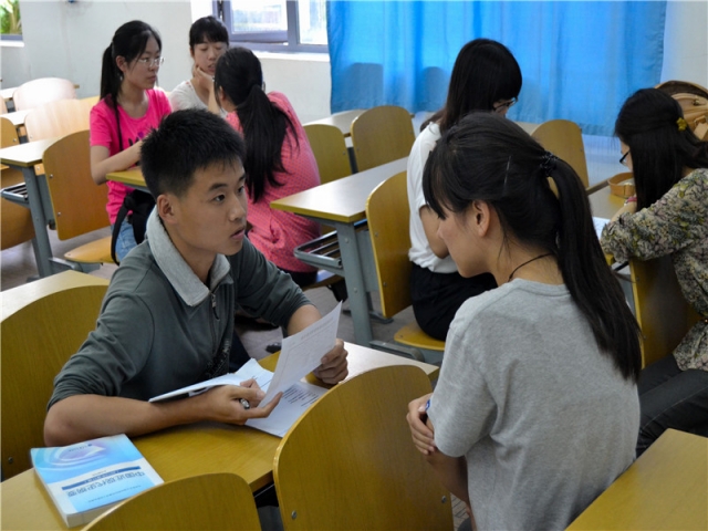在报名的同学们填完了报名表后,各个子项目的负责人逐一就报名同学的假期安排,是否在沪,志愿者经历等问题仔细地进行了询问并给予了中肯的评价。短短一个小时的时间内,前来面试的同学滔滔不绝,来自全校九大学院的报名的同学都向面试官们表达了希望为洋泾街道出一份力的决心。一个小时后,随着最后一名同学顺利完成面试离开了教室,本次洋泾街道志愿者服务队报名面试圆满地画上了句号。