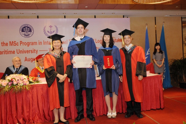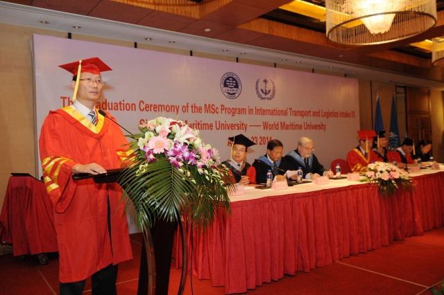 2014年8月23日上午,我校与世界海事大学合作举办的“国际运输与物流”硕士项目第九届学员毕业典礼在上海明悦酒店顺利举行。我校黄有方校长、金永兴副校长、世界海事大学代理校长尼尔•百利腾、马硕副校长、亚洲成人直播 、国际教育学院、国际交流处、研究生院的相关领导及教师代表出席毕业典礼。