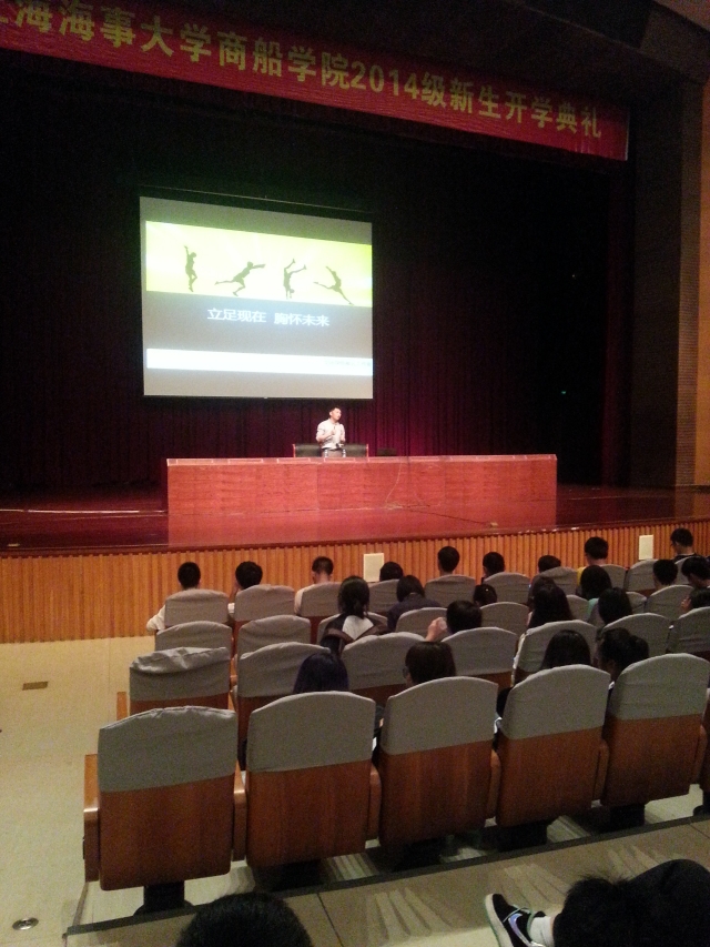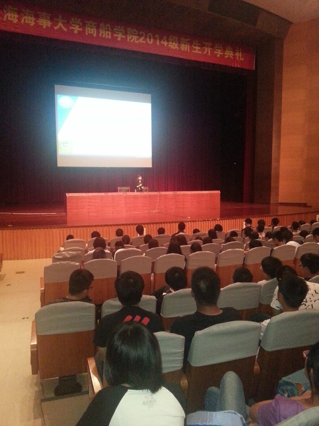 首场讲座由学院党委副书记赵睿老师主讲,题目是《大学与人生》,赵老师饱含着浓郁的人文精神的向同学们多角度、多层次的对大家阐述了她自己对大学的理解,对大学生活的理解,对大学应该做些什么的理解,让与会的同学意识到:大学不仅仅是学习养家糊口的本领的地方,大学之所以为大学,是因为大学有一种有别于企业、军队等的“内在精神”,大学有一种独特的人文气息在支撑着。第二场讲座是刘建老师主讲的《立足现在,胸怀未来》,讲座的内容是关于大学生生涯规划的,包括什么是生涯规划,怎样进行生涯规划,生涯规划的意义何在?刘老师旁征博引,慷慨激昂通过数据和图表融合的方式,结合丰富多彩的案例,引发了新生的思考与共鸣,让新生对今后四年的大学生活规划与管理有了一个大概的目标,为以后的学习和大学经历提供了努力的方向。第三场讲座由陈祯如老师主讲的《大学新生适应教育》,以自己的切身体会,深入浅出的将一些学校和学院的活动,以及在海大的生活经验介绍给在座的同学们,过程中事例生动,感情饱满,引得全场笑声连连,掌声不断。此外,在此次的入学教育中,学院还邀请了校合唱团的两位高声部团长来教新生学唱校歌,以增加同学对海事大学的认同感和归属感。