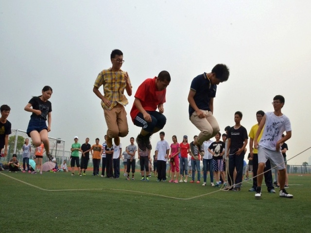 参与活动的学生共有两百多人,被分为六组。活动由五个部分组成:队伍创意、松鼠与大树、团体躲避球、家有恶犬、跳长绳。各组学员在活动过程中相互扶持,气氛颇为活跃。在第一场的“破冰”游戏中同学们跃跃欲试,团结有序,为自己的队伍设计别出心裁的造型并喊出嘹亮的口号。而第二场的“松鼠与大树”游戏中,同学们笼罩在紧张、困惑、恍然大悟、欣喜的循环情绪之下,积极参与。转眼到了第三场活动,各组同学分工明确,迅速抢球、传球、丢球,并躲避对方的球,以防被砸到手臂而被罚下场外,大家兴致勃勃,玩得热火朝天,其乐无穷。接下来的第四场游戏“家有恶犬”更加有趣,每组派三名同学手拉手,一个做“柱子”,固定在一个点,一个做 “链子”,“链子”再拉“恶犬”,其他同学围成圈,将三个同学围在其中,“柱子”不动,“恶犬”去抓围圈的人,被抓到的同学算输,若围圈同学手断掉,就以猜拳的结果为准决定输的同学,输的同学就要被惩罚去做 “柱子”,然后依次类推“柱子”变“恶犬”,“恶犬”变人。最后一个跳长绳活动是以小组为单位进行比赛,游戏规则为在两分钟内依次跳入长绳人数最多的小组获胜,中间停顿就要重新依次跳入计算人数。