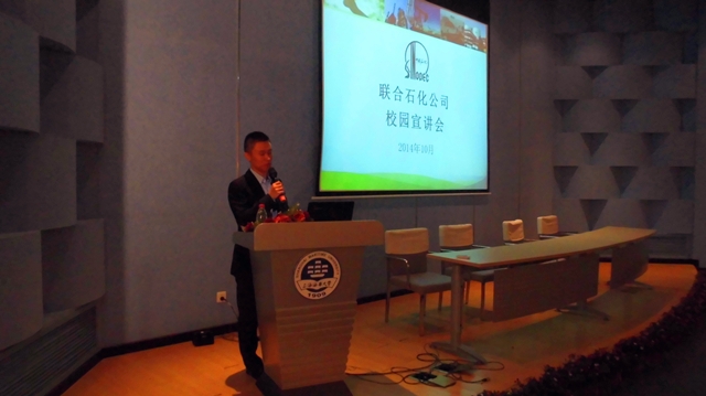 10月18日,中国国际石油化工联合有限责任公司(以下简称“联合石化”)2015届校园招聘宣讲会在我校交运报告厅隆重举行。宣讲会由亚洲成人直播 国航11级辅导员都志亮主持。