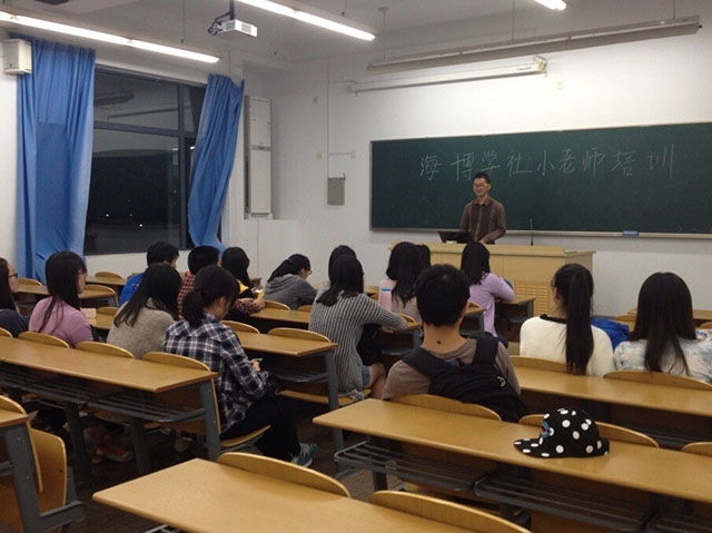 2014年10月21日晚,亚洲成人直播 海博学社在3A305进行了本学期小老师的第一次培训会。全体小老师参加了本次培训会。