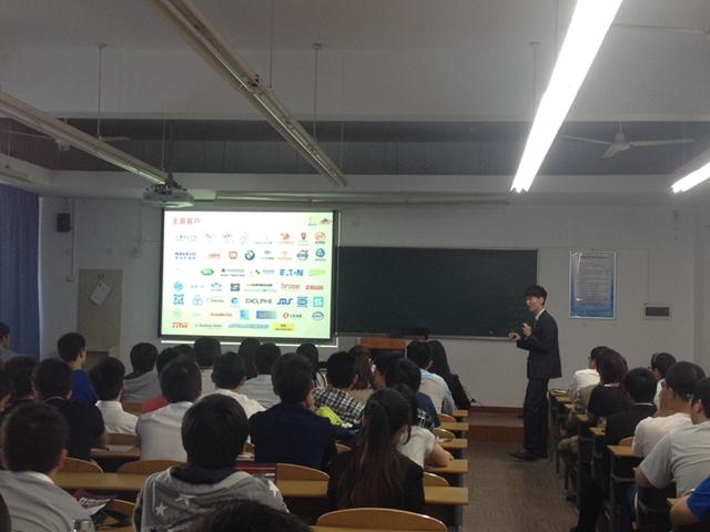 招聘会分为公司及招聘岗位介绍、Q&A及简历投递三部分;周祎杰经理对公司的人才招聘计划和公司发展状况做了简单介绍,并介绍了上海安吉汽车零部件物流有限公司管理培训生的职业发展前景,随后公司毕业于我校交通运输规划与管理的高级技术经理赵先生,在现场与同学们分享了他的工作经历和经验;在Q&A和简历投递环节,同学们就发展前景问题进行了热烈的交流。