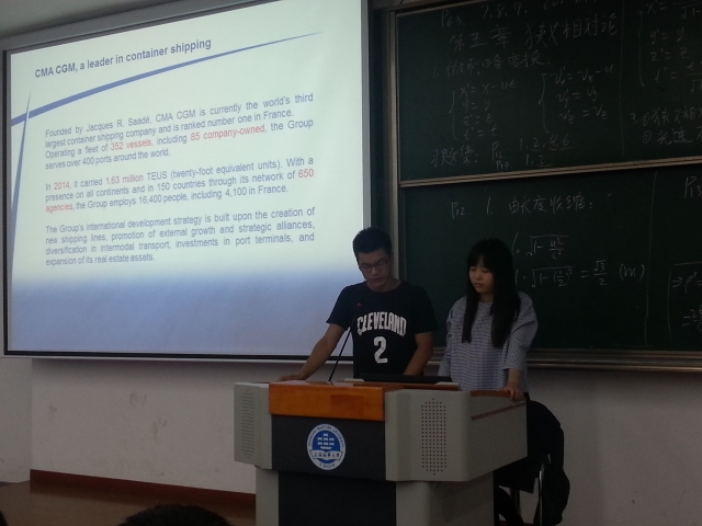 在活动中,国航12各班派代表上台做关于航运企业的报告分析,如马士基、地中海、达飞等多家大型航运企业。各班代表就选择的公司企业展开介绍和分析,就公司的规模,航线以及运力等发面的情况进行介绍,结合上课所学,进行细致的分析。同时会挑选面试实例,向大家介绍一些面试技巧。每班代表讲解之后,朱红红老师均会认真听取并解决了学生对相关企业选择的困惑,强调同学们当前还是要以学业为重,积极学习专业知识,掌握专业技能,提升自己的综合素质,把自己塑造成为专业型的人才,尤其还要加强英语技能的培养,才能适应当前社会需求。